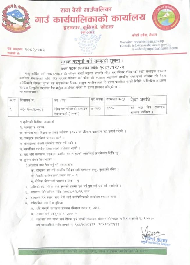 गणक पदपूर्ति गर्ने सम्बन्धी सूचना ! (प्रथम पटक प्रकाशित मिति (२०८२/१२/२३)