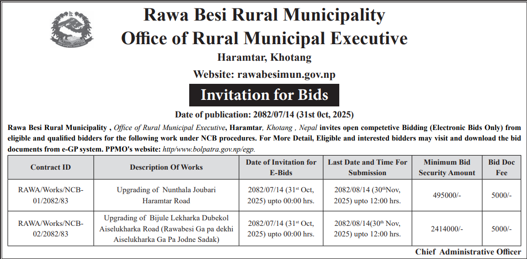 बोलपत्र आव्हान सम्बन्धी सूचना !