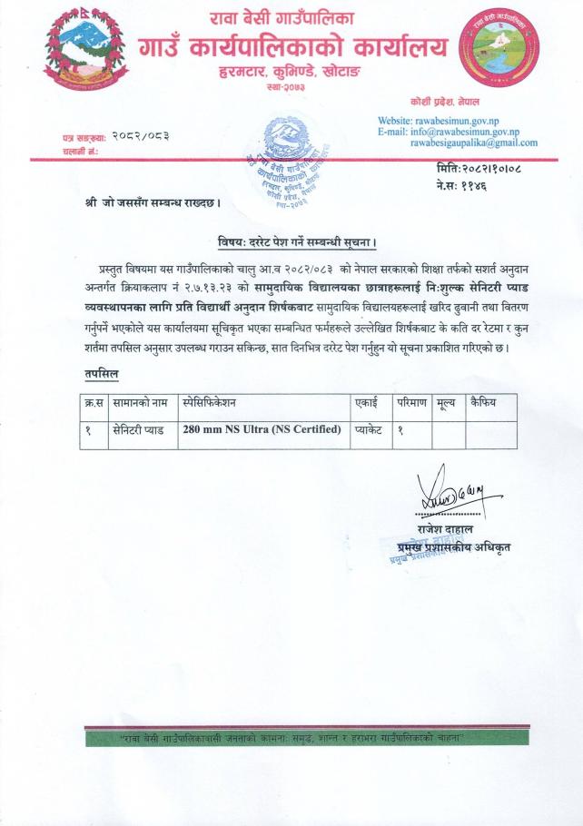 Home » दररेट पेश गर्ने सम्बन्धी सूचना !!